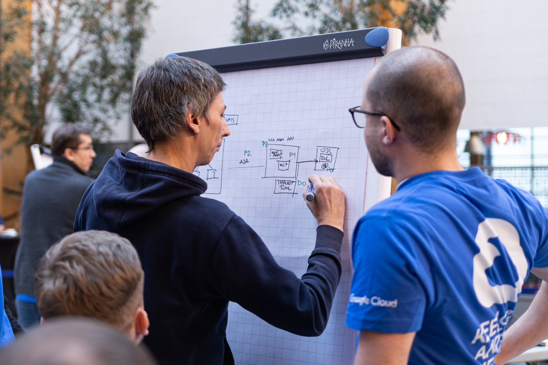 The hackathon kicked off intensely. Teams analyzed real business use cases, planned how AI could help solve them, and then designed solutions with tangible business value.